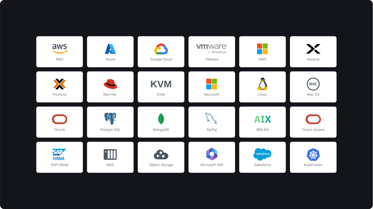 VEEAM은 클라우드, 가상 환경, 물리 환경, SaaS, Kubernetes 워크로드 등 모든 데이터 환경을 백업하고 신속하게 복구하는 유일한 솔루션으로 OS, DB, 폴더 및 파일 백업을 하나의 통합 솔루션으로 데이터 손실 방지 및 신속한 복구가 필요한 금융, 헬스케어, 제조, 교육, 공공기관 등 다양한 산업군에서 필수적이고 완전한 보완책입니다.